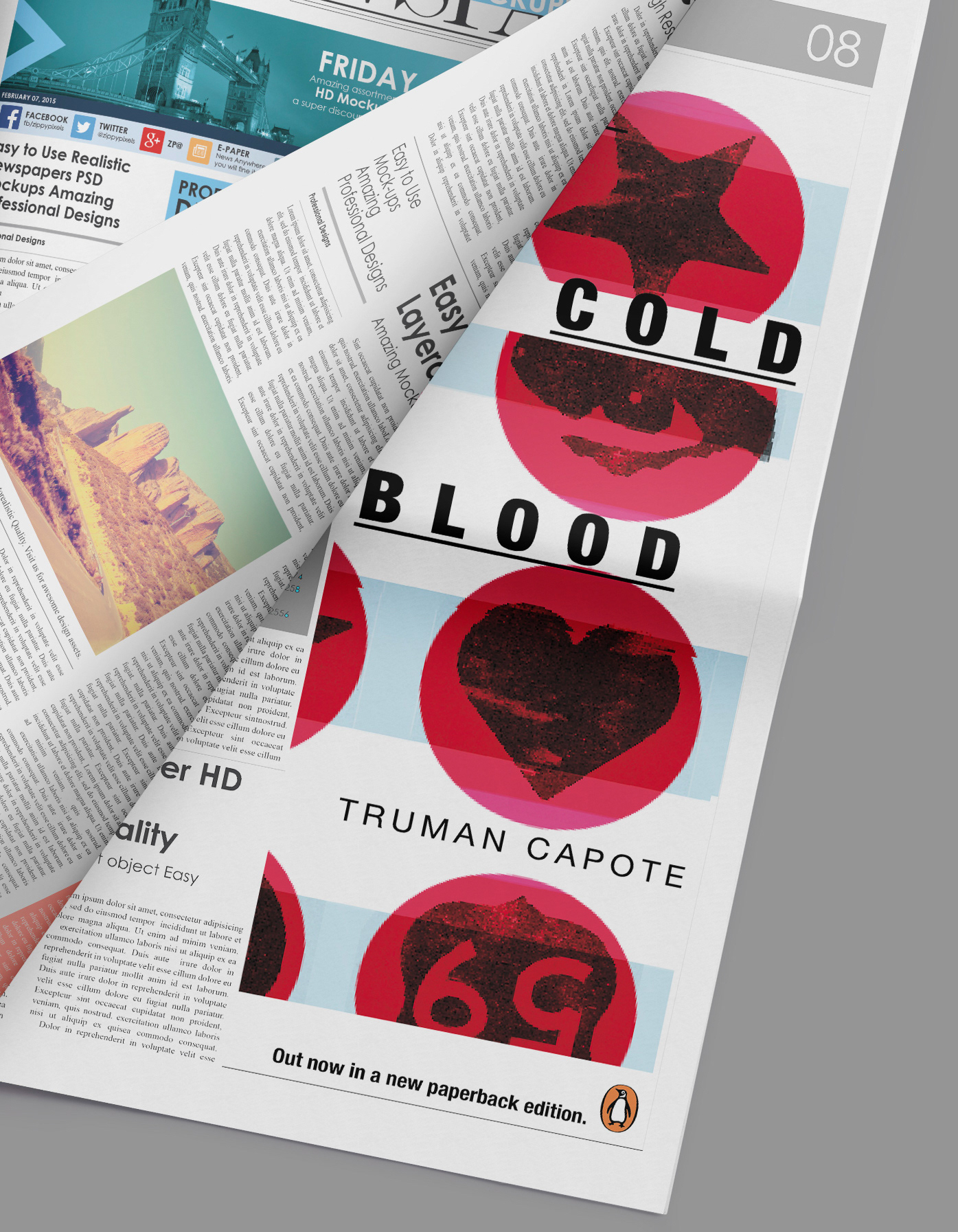 For this cover re-design of Truman Capotes classic non-fiction crime novel, I devised a concept called Dark Americana. It taps into the author’s themes in the book such as the consumer society and the dark underbelly of the American dream.